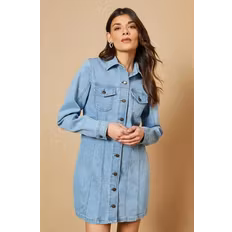 Dress, Shirt Dress, Solid Colour, Material: Denim, Cotton, Viscose
