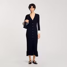 Dress, Knitted Dress, Long Dress, Solid Colour, Material: Viscose, Jersey, Fabric, Stretch, Reversible