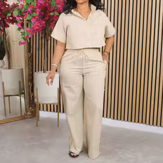 Suit, Solid Colour, Material: Polyester, Linen, Pockets