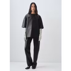 Trousers, Solid Colour, Material: Leather, Wool, Pockets