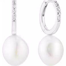 Hoops, Material: Silver, 18k, Stone: Zirconia, Pearl, Stone Colour: Transparent, White