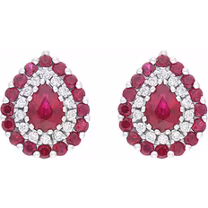 Earring, Material: White Gold, 18k, Stone: Diamond, Ruby, Stone Colour: Red