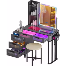 Material: Glass, MDF, Colour: Grey, Black,Storage Solutions: Retractable Drawers