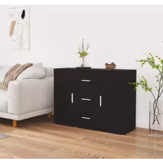 Material: MDF, Colour: Black,Storage Solutions: Doors, Retractable Drawers