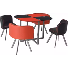 Material: Glass, Leather, Colour: Red, Orange, Black, White, No. of Chairs: 4