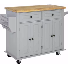 Material: Wood, Colour: Grey, Features: Casters,Storage Solutions: Doors, Shelves, Retractable Drawers