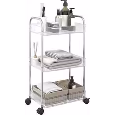 Material: Glass, Colour: Transparent, Features: Casters,Storage Solutions: Shelves