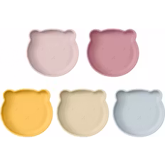 Plate & Bowl, Blue, Yellow, Pink, Material: Silicone
