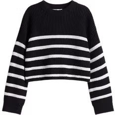 Colour White, Black, Knitted Sweater, Material Cotton, Acrylic, Striped