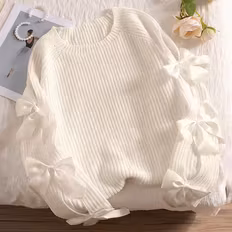 Colour White, Knitted Sweater, Solid Colour