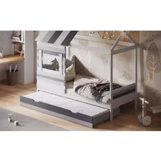 Beds for kids' rooms are available in various sizes, including toddler, single, and bunk beds. Toddler beds suit younger children transitioning from a cot. Single beds are perfect for older kids, providing more space. Bunk beds save room and can be fun for siblings sharing a room.