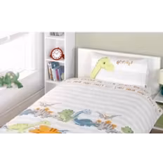 Bed Set, White, Material: Cotton, Theme: Dinosaurs