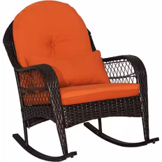 Costway Patio Rattan Rocking Chair Pillow Orange