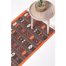 Handmade, Woven, Cotton, Wool, Multicolour, Beige, Brown
