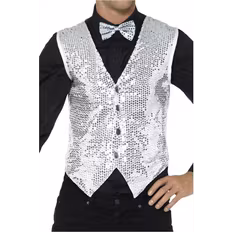 Men Fancy Dresses Smiffys Sequin Waistcoat Silver