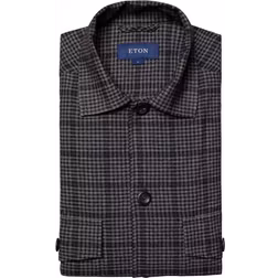 Eton Plaid Knit Shirt Jacket - Grey/Blue