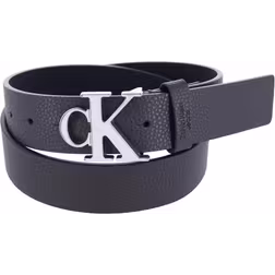 Calvin Klein Men's Casual Ck Monogram Cut Out Buckle Belt Logo Black Small (30-32)