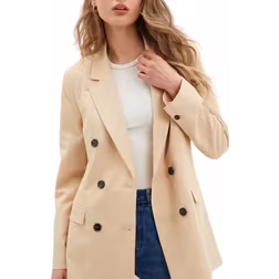 Dorothy Perkins Women's Double Breasted Longline Woven Blazer in Camel | Size: 16