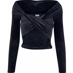 Urban Classics Velvet Rib Crossed Off Shoulder Long Sleeve Shirt - Black