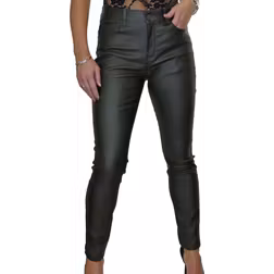 Paulo Due Women's High Rise Coated Leather Look Jeans in Dark Olive | Size: 10