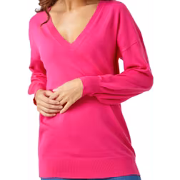 Plain Stretch V-Neck Longline Jumper - Fuchsia - 20