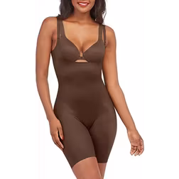 SPANXshape Invisible Open-Bust Mid-Thigh Bodysuit - Medium Control - Brown - XS