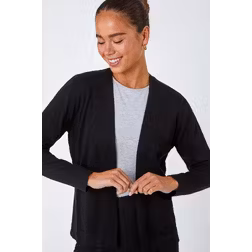 Roman Petite Plain Stretch Cardigan, Black, Size 16P, Women