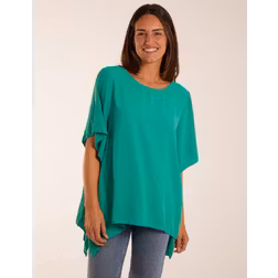 Blue Vanilla Women's Chain Detail Short Sleeve Blouse in Green | Size: Small/Medium - S/M