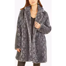 Yumi Women's Grey Snakeskin Print Faux Fur Coat | Size: 16