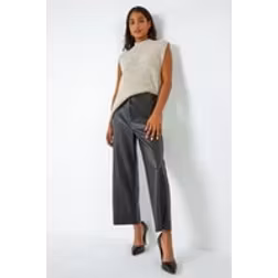 Faux Leather Wide Leg Crop Trousers - Black - 14