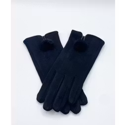 SVNX Womens Sleek Black Gloves With Pom Pom - One Size