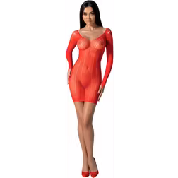 Passion BS101 Bodystocking Mini Dress - Red - One Size