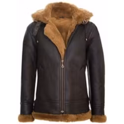 (3XL) Mens Sheepskin Flying Jacket Hooded Bomber B3 Brwn