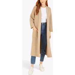 Yumi Womens Oatmeal Knitted Maxi Cardigan With Pockets - Beige - Size Medium