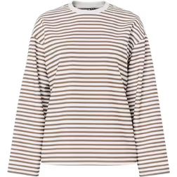 Pieces Sadie Long Sleeve Top - Cloud Dancer/Tawny Port