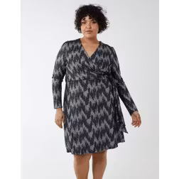 Blue Vanilla Women's Curve Fixed Wrap Skater Dress With Tie in Silver | Size: 26