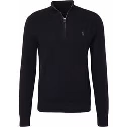 Quarter-Zip Jumper in Cotton Pique - Plain Black - M