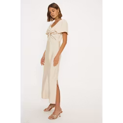 Oasis Women's Satin Twist Front Angel Sleeve Midi Bridesmaid Dress in Champagne | Size: 16