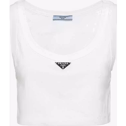 Prada Womens White Logo-plaque Cropped Cotton-jersey Tank top