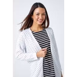 Cotton Blend Waffle Knit Cardigan - White - 18