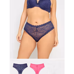 Yours Plus Size 3 Pack Navy Blue & Pink Leopard Print Brazilian Briefs Size 26-28
