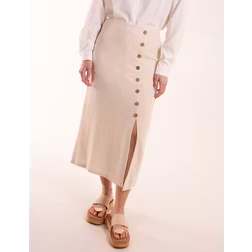Blue Vanilla Linen Button Front Midi Skirt STONE