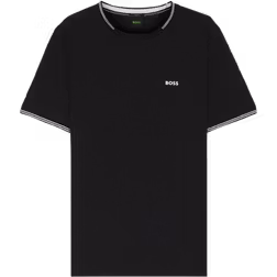 BOSS Taul Stretch Cotton T-shirt with Stripes & Logo - Black