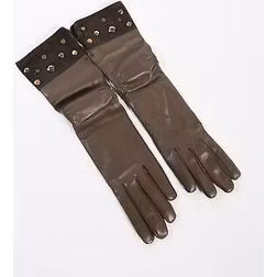 Tod's Women's Long Leather Gloves Studded Cuff- Brown | Size: 7