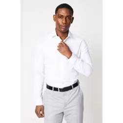 Burton Men's White Tailored Fit Long Sleeve Easy Iron Shirt | Size: 15.5 in