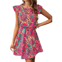 Breezaya Floral Print Ruffle Trim Dress Vacation Beach Outfits Women