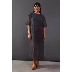 Premium Tissue Organza Midaxi T-shirt Dress - Charcoal - 12