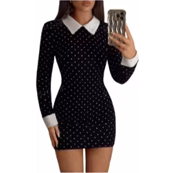SHEIN Y2k Fitted Black & White Polka Dot Contrast Collar "Wednesday" Mini Dress For Women