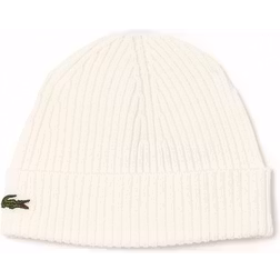 Lacoste Rib Knit Brushed Wool Beanie - White