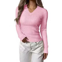 Apperloth A Women's Spring Casual Thin And Soft V Neck Long Sleeve Slim Fit Fitted Cropped Cable Knit Sweater Basic Pullover Top